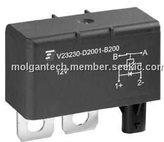 V23230D2001B200 specification: (1)Contact arrangement: 1 form B, 1 NC; (2)Rated voltage: 12VDC; (3)Max. switching voltage: depends on load parameter set; (4)Rated current, cable 50mm2: 175A at 85℃; (5)Limiting making current: 200A at <5VDC; (6)Limiting breaking current: 200A at <5VDC; (7)Limiting short-time current: depends on load parameter set; (8)Contact material: AgSnO2; (9)Contact style: single contact; (10)Min. recommended contact load: 1A at 5V; (11)Initial voltage drop: 100mV at 100A; (12)Operate/release time typ. at nominal voltage Bounce time max.: 25/6ms; (13)Mechanical endurance >10000000 ops.